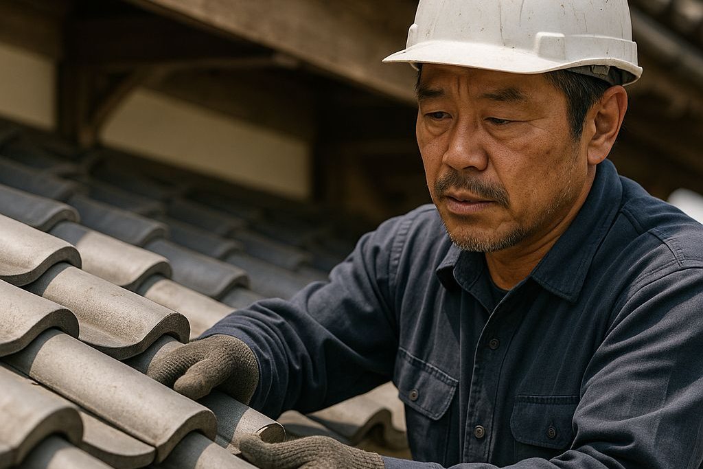 屋根の形状に合わせて瓦を調整し、丁寧に並べて仕上げます。