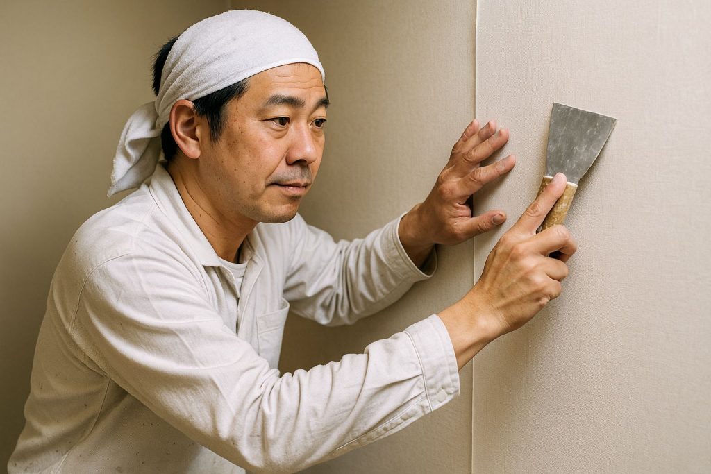 壁紙(クロス)を貼る職人です。